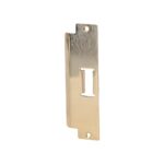 Replacement stainless steel striker plate for swing doors with rebate.
