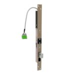 High security motorised electric lock with control electronics for single or interlocked sliding doors. Stainless steel striking plate and counterplate with anti-rebound ball and swinging hook deadbolt in hardened anti-cutting steel, equipped with mechanical lock in closed position. High burglary resistance. It has a high speed of execution of the opening and closing command, but also allows mechanical opening and closing with European cylinder (cylinder with inside knob cannot be used). It is equipped with a magnetic sensor with N.O. contact for checking the position of the door leaf (to be inserted on the door frame), output cable from the motor unit with quick-connect connector and electronically controlled current limiter. Magnet and sensor are adjustable in extension up to 25 mm.