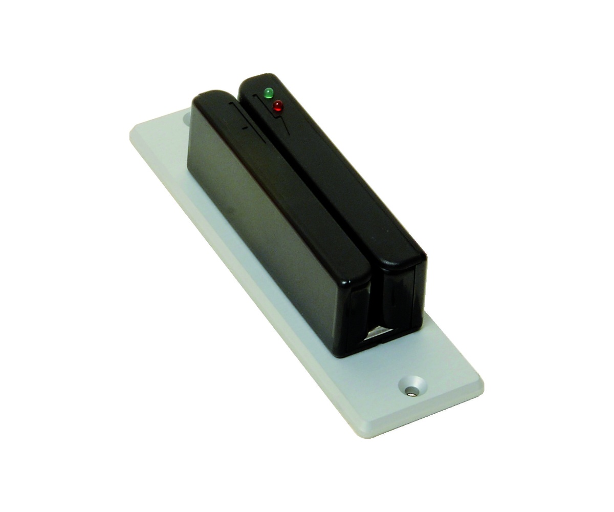 Black ABS slide reader with silver anodised aluminium base (black on request).