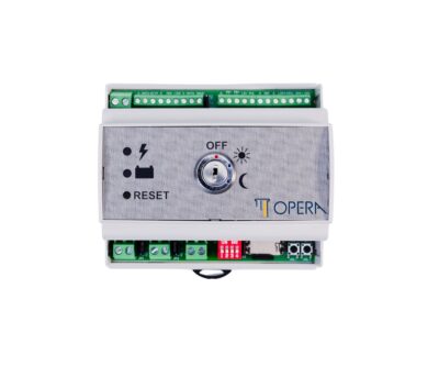 | Front panel with | - Mains presence LED - Low battery led - Central reset button and reader - Key switch System On/Day/Off Service |