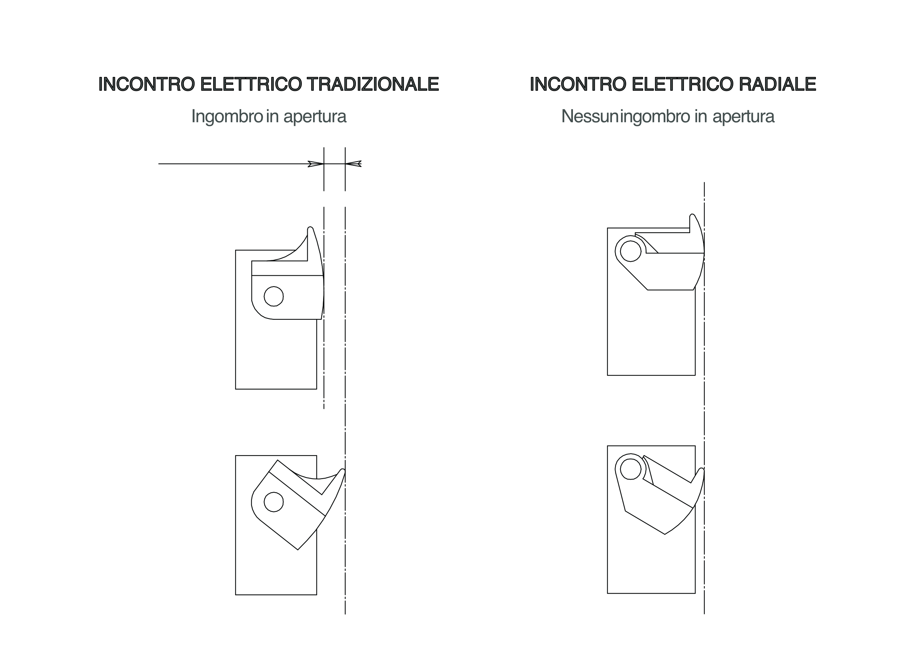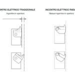 Abrepuertas eléctrico simétrico - reversible, ideal para electrificar puertas de aluminio o madera con picaporte mecánico y cerraduras de palanca sin tener que hacer un corte en el montante para el movimiento del labio durante la apertura (el labio móvil que bloquea el picaporte, durante la apertura no se mueve girando hacia fuera como en los abrepuertas eléctricos tradicionales, sino que gira deslizándose hacia dentro). Bloqueo del picaporte ajustable horizontalmente. Bloqueo sin alimentación. Se suministra sin placa de cierre.