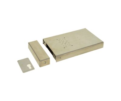 Carter pour boulon solénoïde et plaque d'armature en acier inoxydable, main réversible, fourni avec plaque d'armature symétrique en acier inoxydable (Art. 02260D / 02260DSA). Entrées de 70 et 90 mm disponibles sur le même carter.