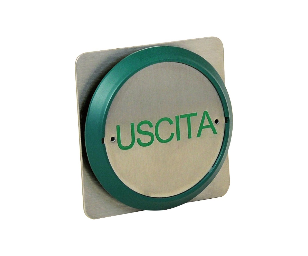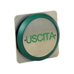 Façade en acier inoxydable. Disponible avec différentes sérigraphies : 'Exit' en vert [55020], "Quitter" en vert [55020EX], ou neutre sans sérigraphie [55020NT].