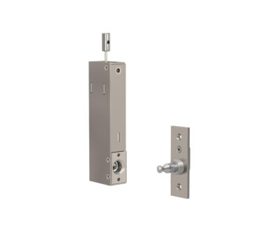 Elettroblocco di sicurezza in acciaio inox ad azionamento elettronico, ideale per la chiusura di scomparti contenti oggetti di natura sensibile, come armadietti di spogliatoi in palestre e piscine, laboratori, ospedali e uffici. La richiusura meccanica all’accostamento dell’anta garantisce il meccanismo di blocco anche in totale assenza di corrente. Il comando di apertura elettronico mediante contatto pulito N.A. rende lo sblocco comandabile tramite sistemi di apertura da remoto (con possibilità di segnalare l’effettivo stato di apertura o chiusura), lettori RFID o altri sistemi di autenticazione già installati. Inoltre è dotato di tirante manuale per lo sblocco meccanico di sicurezza che garantisce la possibilità di apertura anche in assenza di corrente. L’apertura è limitata alla durata dell’impulso (con limitatore di corrente) ed facilmente integrabile in sistemi per la consegna automatizzata di prodotti.