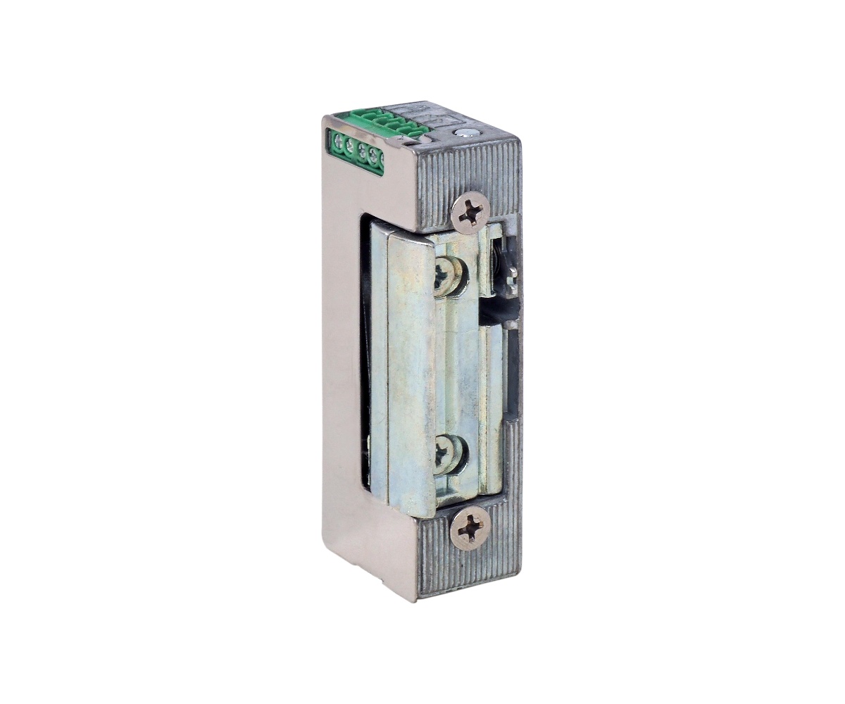 Incontro elettrico simmetrico – reversibile, ideale per elettrificare le aperture di porte in alluminio o legno con serrature meccaniche a scrocco e catenaccio. Particolarmente adatto per le applicazioni in cui, in seguito alla ricezione dell’impulso di apertura, la porta deve potersi ri-bloccare anche se l’anta non è stata aperta. Blocco scrocco regolabile orizzontalmente. Bloccato senza alimentazione e dotato di temporizzatore elettronico interno. Fornito senza frontale.