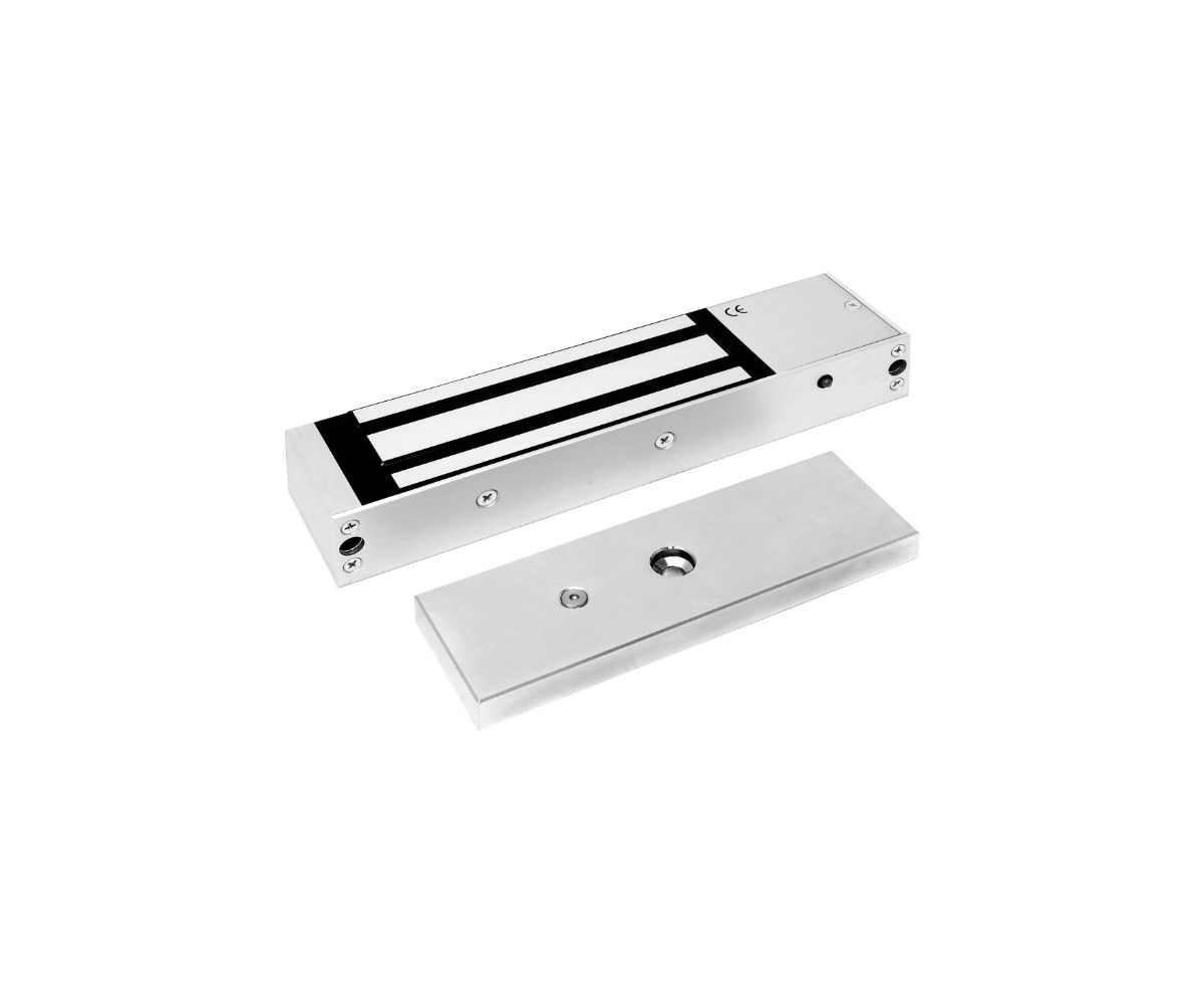 Elettroserratura di sicurezza con trattenuta elettromagnetica antipanico (sbloccata in assenza di corrente). Facilmente applicabile su porte pre-esistenti. Non necessita di nessuna manutenzione o regolazioni nel tempo. Nessuna usura meccanica. Con sensore ad effetto di Hall per la verifica dello stato di porta bloccata / sbloccata e temporizzatore di richiusura. Silenziosità di funzionamento. Apertura esterna da interruttore a chiave, telecomando, controlli accessi, ecc… Apertura interna da pulsante.